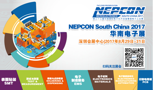 NEPCON South China 2017(第23届华南国际电子生产设备暨微电子工业展)即将于8月29日-31日在深圳会展中心举行,NEPCON立足于华南电子制造业的核心区域,是电子制造行业规模空前、精英云集的产业盛宴。届时,来自全球电子制造业超过600个领先品牌将云集现场,集中展示各自的产品创新与技术革命。专业观众可以在展会期间第一时间触及各种关于SMT表面贴装、电子制造自动化、焊接与点胶喷涂、测试测量等在电子制造环节不可或缺的解决方案。同时,还可以通过参与同期举行的多场技术研讨会和行业高峰论坛了解行业发展趋势及技术应用。